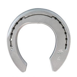 Tres clips, inserto de acero incrustado en la puntera para aumentar la resistencia al desgaste, hecho de aleación de aluminio de grado aeroespacial, diseñado para una máxima resistencia: las herraduras de aluminio están disponibles como parte de la gama de herraduras correctivas y/u ortopédicas de Jim Blurton.